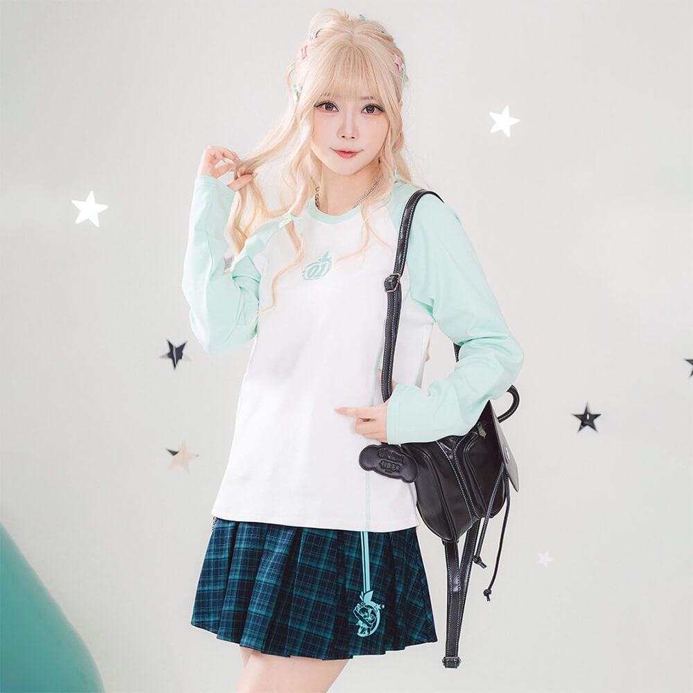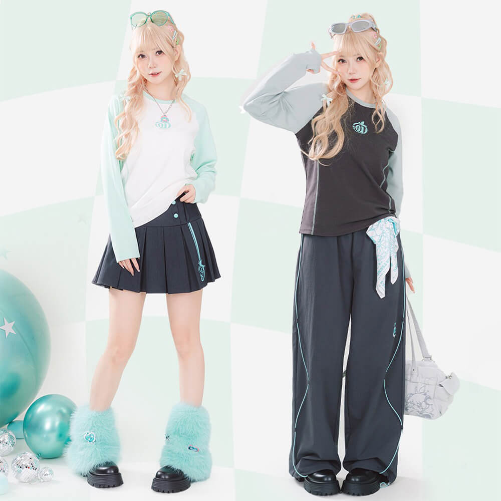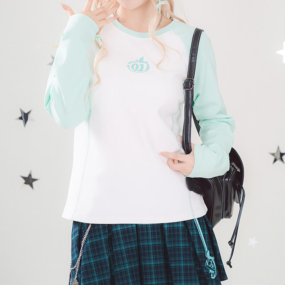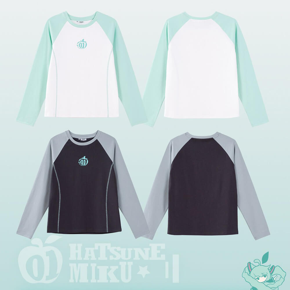 Layer up with effortless style in this Hatsune Miku Raglan Tee! Part of the "Millennium Ice Candy Apple" series, this long-sleeve shirt features color-blocked raglan sleeves that add a sporty, Y2K-inspired twist to a classic fit. Made from soft cotton-spandex blend with a comfortable ribbed collar, it's the perfect versatile top for year-round wear.