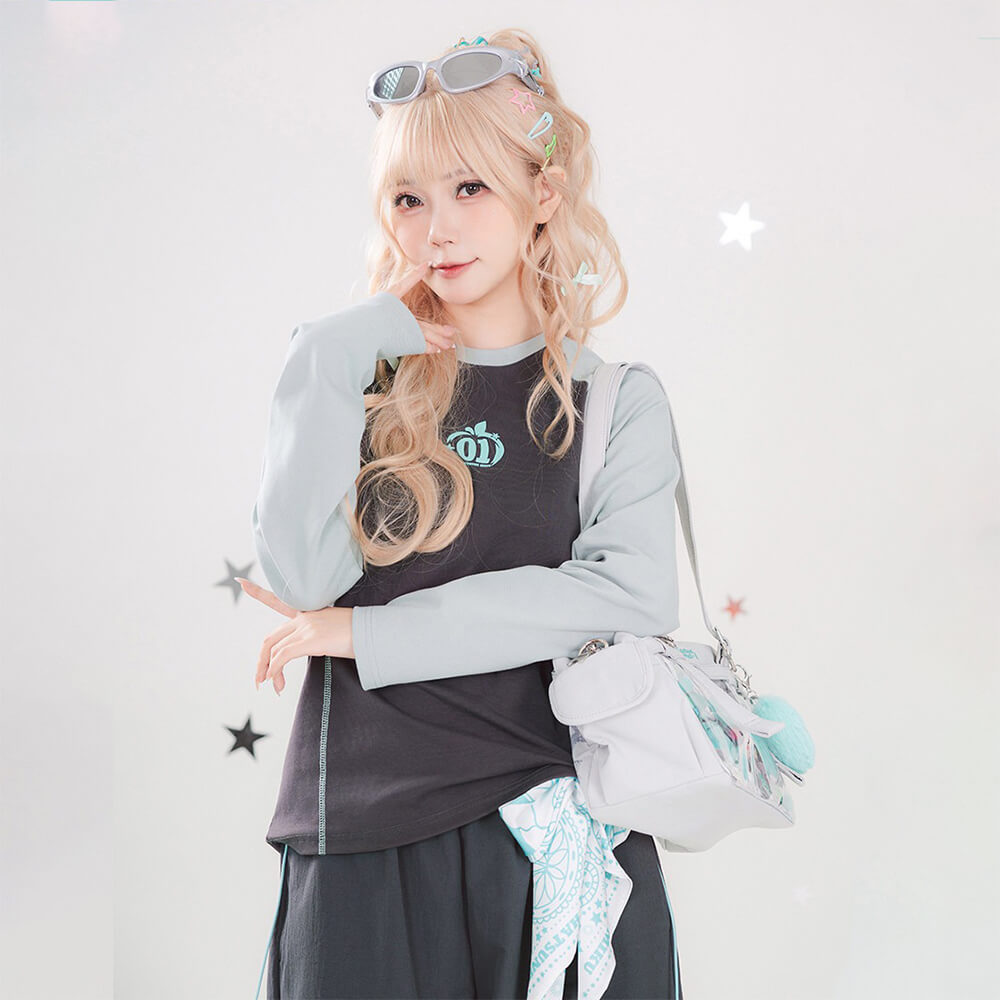 Hatsune-Miku-Y2K-Apple-Series-Dark-Gray-Raglan-Long-Sleeve-Tee